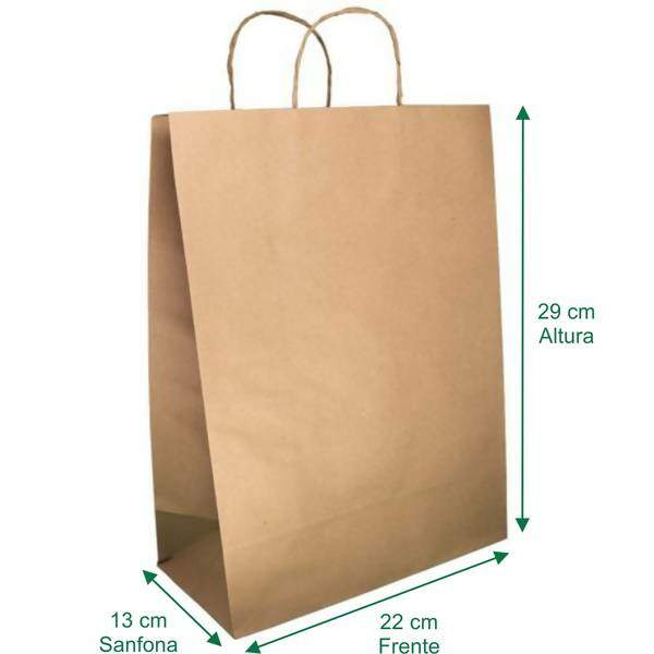 Descrição Sacola de Papel Kraft 22x29x13 - 100 Peças