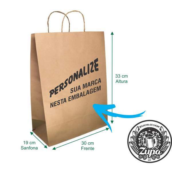 Sacola de papel Kraft personalizada . Impressão até 2 cores.
